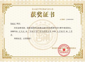 全国第五届中华经典诵写大赛“诗教中国”三等奖(国家级)