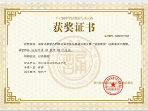 全国第六届中华经典诵写大赛“诵读中国”三等奖(国家级)